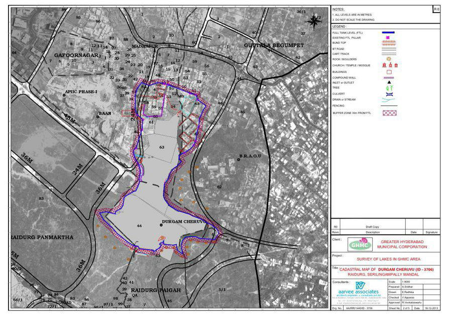Durgam Cheruvu, often referred to as ‘Secret Lake,’ is a well-known landmark in the western part of Hyderabad. However, over the years, encroachments have drastically reduced its area. Originally spread over an estimated 100 acres, recent measurements suggest that the lake now covers only 84 acres. Despite the area being designated as a Non-Development Zone (NDZ) through a preliminary notification a decade ago, the final notification to protect the area was never issued, allowing for unchecked encroachments.